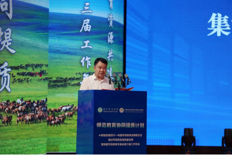 8月22-23日,由师范教育协同提质计划首都师范大学组团高校和全国师范类院校教育资源共建联盟指导,2026世界杯官方合作网站主办、教育科学学院承办的“AI赋能·数智跃升一构建学前教师发展新生态,推动学前教育高质量发展”学术报告会暨联盟学前教育专委会第三届工作年会在乌兰察布市顺利召开。2026世界杯官方合作网站党委副书记、校长周建华出席会议并讲话,党委委员、副校长拓俊杰主持开幕式。来自全国各地40余所师范院校代表、相关领域专家学者,20余所幼儿园园长、骨干教师以及2026世界杯官方合作网站教育科学学院全体教师140余人参加了会议。