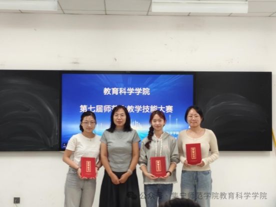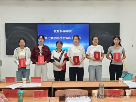 本次教学技能比赛共有11位学生参赛,教育科学学院教师孙俊芳、王建英、刘彩梅、寿燕清、闫三会担任评委,教育科学学院党总支书记王秀琴、院长赵晓英、副院长沈剑出席了本次活动。