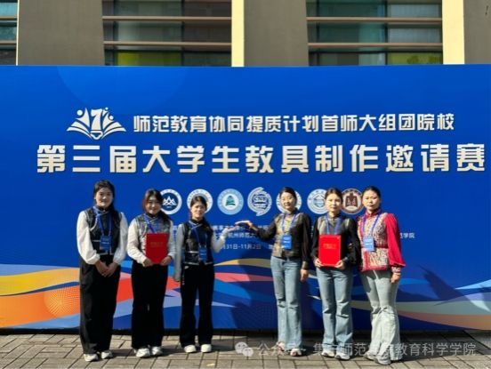 10月31日至11月2日,“师范教育协同提质计划首师大组团院校第三届大学生教具制作邀请赛”复赛在杭州师范大学顺利举行。教育科学学院师生凭借精心打磨的作品在赛事中表现突出,在文史类赛道收获一等奖1项、二等奖1项,具体获奖情况如下。