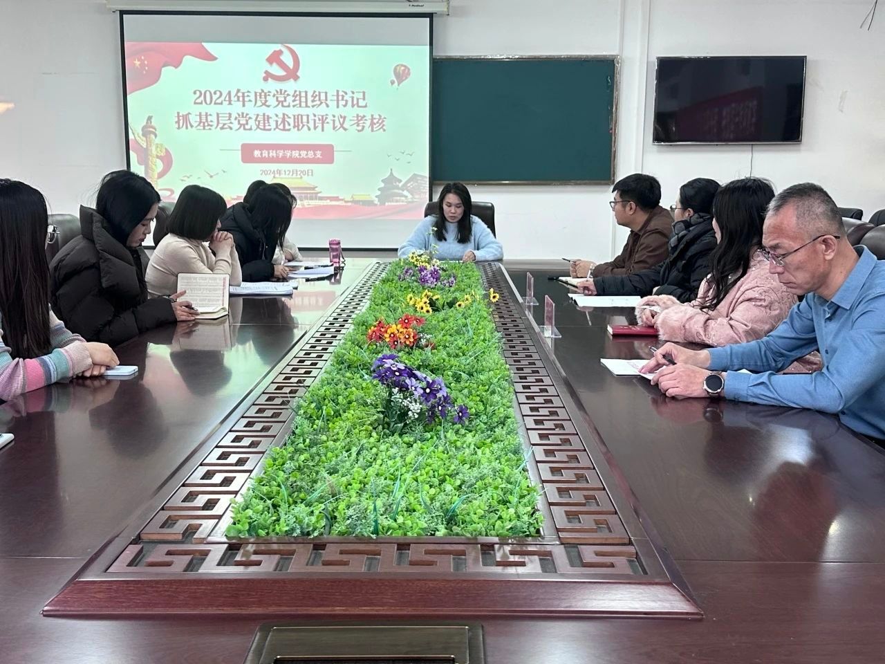 按照校党委《关于务实有效开展2024年度党组织书记抓基层党建述职评议考核工作的通知》要求,12月20日下午,教育科学学院党总支在230会议室召开2024年度党支部书记述职评议考核会。学院党总支委员、各支部党员参加会议。会上,听取了教师支部、学生支部书记述职。党总支副书记韩超对每位支部书记述职后逐一进行点评,认为各支部书记一年来能够积极履行“第一责任人”职责,党建工作取得一定成效,同时指出各支部党建工作中存在的主要问题。