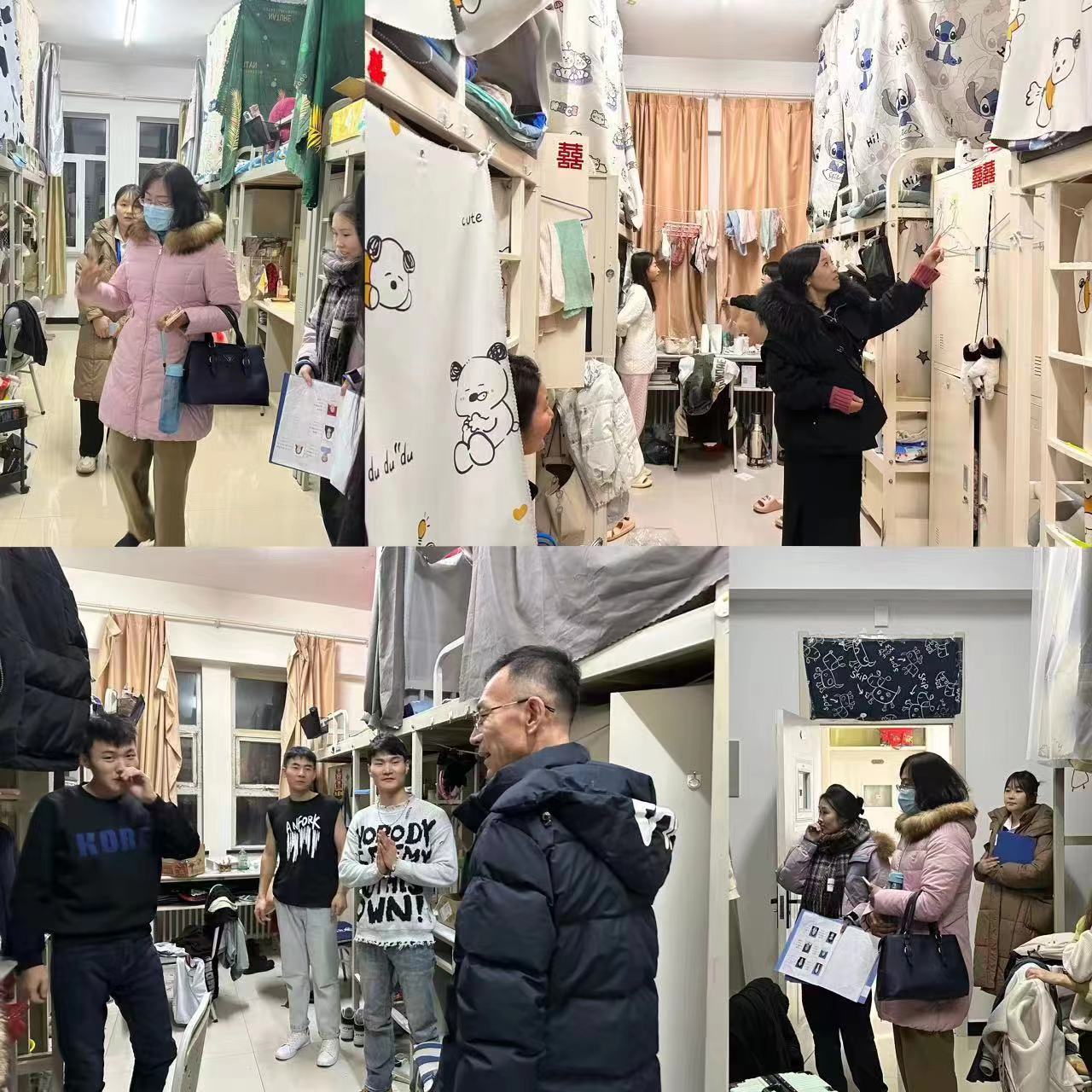 检查宿舍同时,老师们与学生进行亲切交谈。了解学生宿舍供暖情况,询问学生学习情况,叮嘱同学合理分配学习时间做好期末备考工作。
