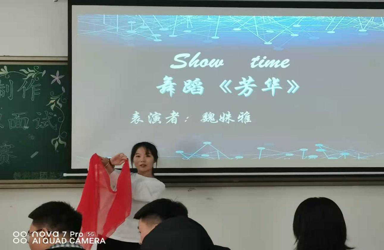 本次比赛分为两部分,一是简历制作,二是模拟面试。每位选手自我介绍的时间为两分钟。随后28位选手开始自我介绍和激烈的比拼。每位选手都有着与众不同的经历与收获,每一位的介绍都引人入胜,他们有着对未来求职的清晰规划。为缓解现场紧张的气氛,在精彩比赛期间,学生会体育部大一部员为我们带来了主题曲《老男孩》,28位选手展示完华后,学生会文艺部的魏姝雅又给我们带来了舞蹈《芳华》。