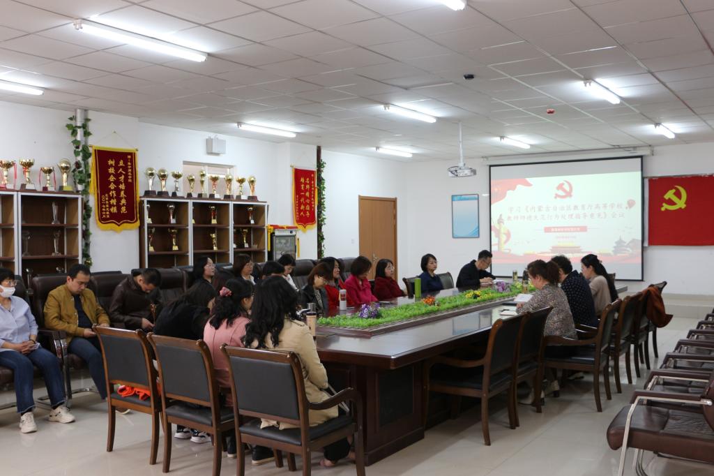 院长孙霞带领大家学习了《内蒙古自治区高等学校教师师德失范行为负面清单》,并向老师们提出了一定要严守教师职业道德规范,把握住职业行为“红线”,严于律己,为人师表的要求。