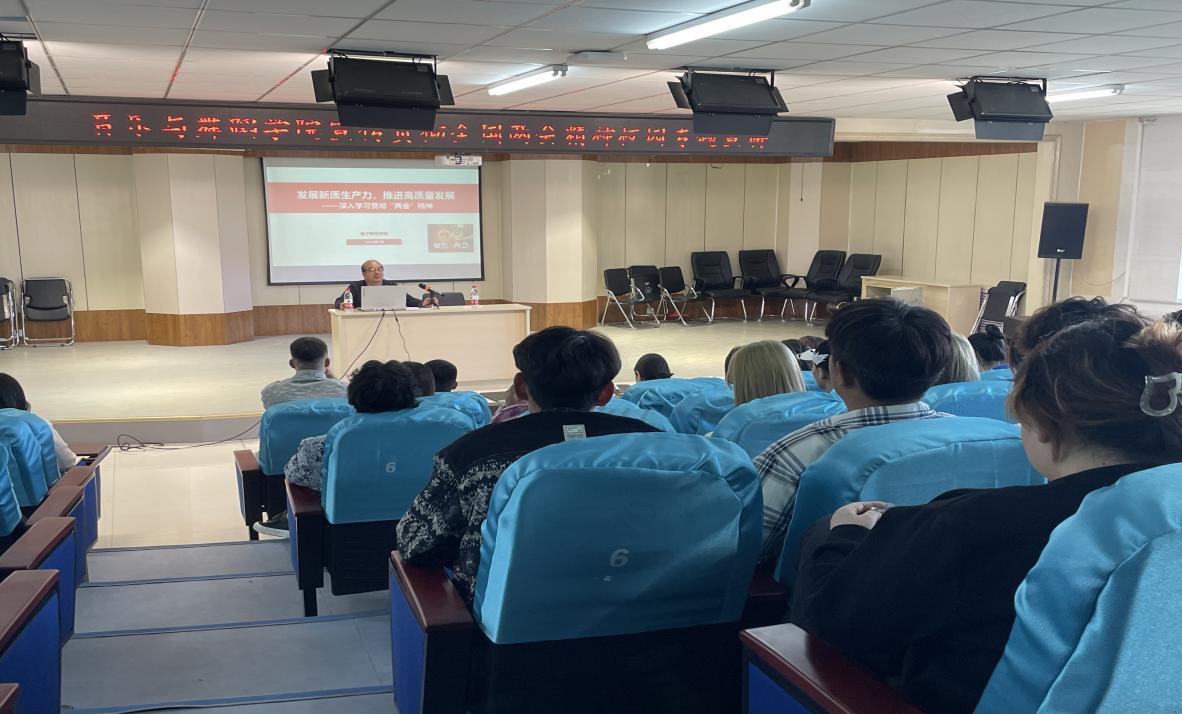 段老师以“发展新质生产力推进高质量发展”为题,以十大任务和十个关键词为切入点为师生党员讲解了政府工作报告和“两高”工作报告,强调了学习两会精神的重要性,深入阐述了党的路线、方针、政策,分析了当前我国面临的形势和任务,强调了全面深化改革、推进经济高质量发展、加强社会建设等方面的紧迫性和必要性。并嘱咐师生党员认真学习两会精神,深刻领会国家政策导向,勇担时代使命,切实将理论学习转化为实际行动,为学校高质量发展再建新功。