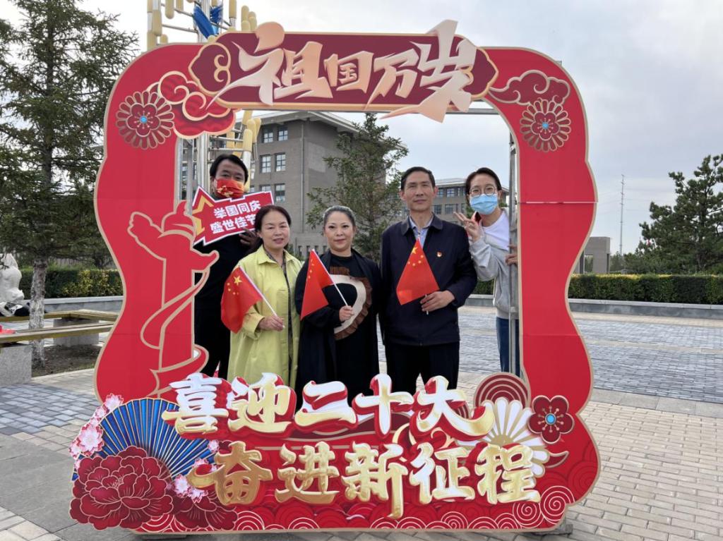 最后师生们纷纷在献礼二十大立牌处打卡