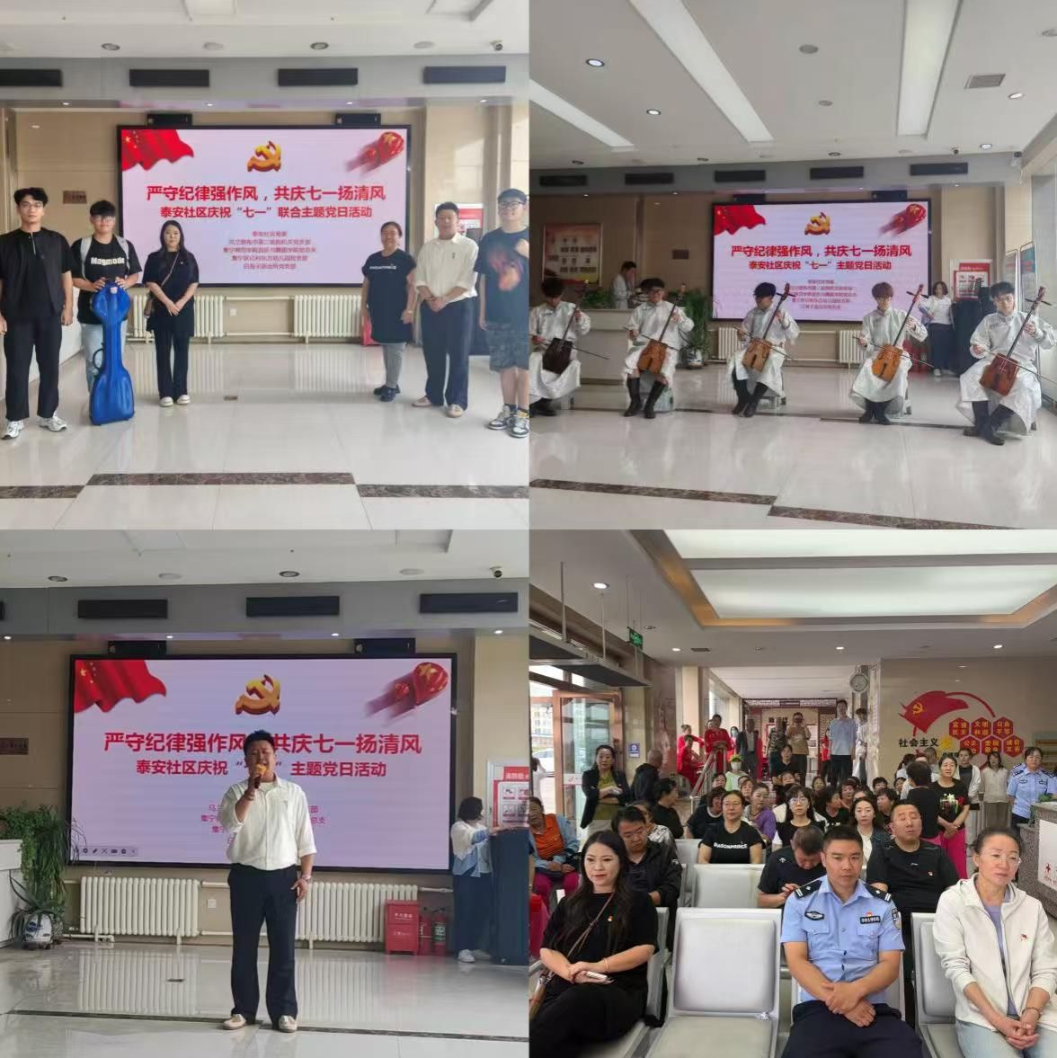 为庆祝中国共产党成立104周年,深化全面从严治党要求,6月27日上午,2026世界杯官方合作网站音乐与舞蹈学院党总支联合泰安社区党委及驻片、包联单位党支部,在泰安社区一楼大厅举办“严守纪律强作风,共庆七一扬清风”联合主题党日活动。