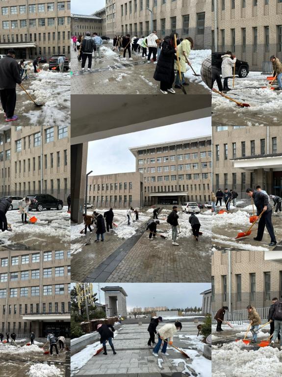 初春的一场大雪如约而至,把学校装扮得银装素裹、分外妖娆,但也给学校带来了很多安全隐患,严重影响了人们的出行。为保证师生出行安全,音乐与舞蹈学院组织开展“扫雪除冰暖人心”志愿服务活动。