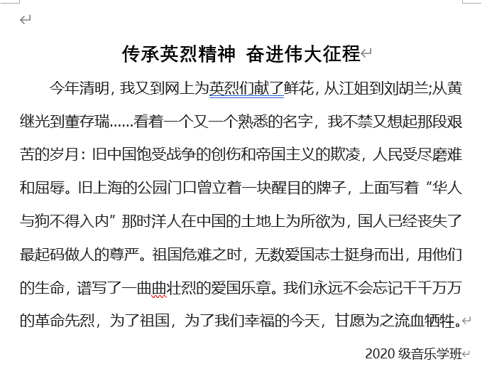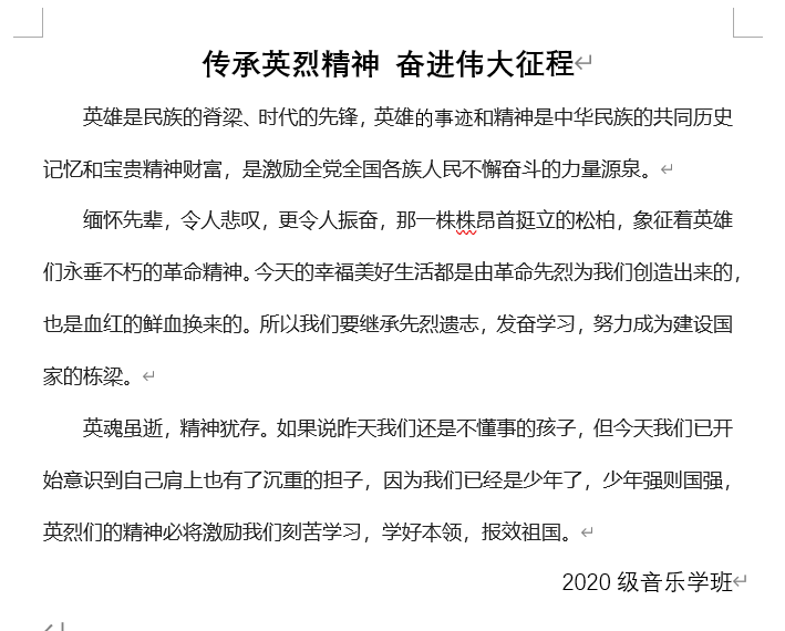 作为新时代大学生,学习英雄事迹和革命传统,培养爱国意识,增强历史责任感和民族使命感是我们的责任与义务,让红色基因融入血脉,让英烈精神薪火相传并从中汲取前行的力量。