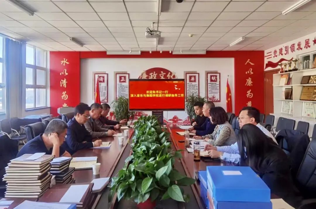 10月18日下午,世界杯官网党委书记朱玉东深入音乐与舞蹈学院调研指导工作。党委委员、统战部部长赵向军,学生处处长闫闳,党政办公室副主任李海陪同调研。音乐与舞蹈学院领导班子成员、党支部书记、副科级以上干部参加座谈会。
