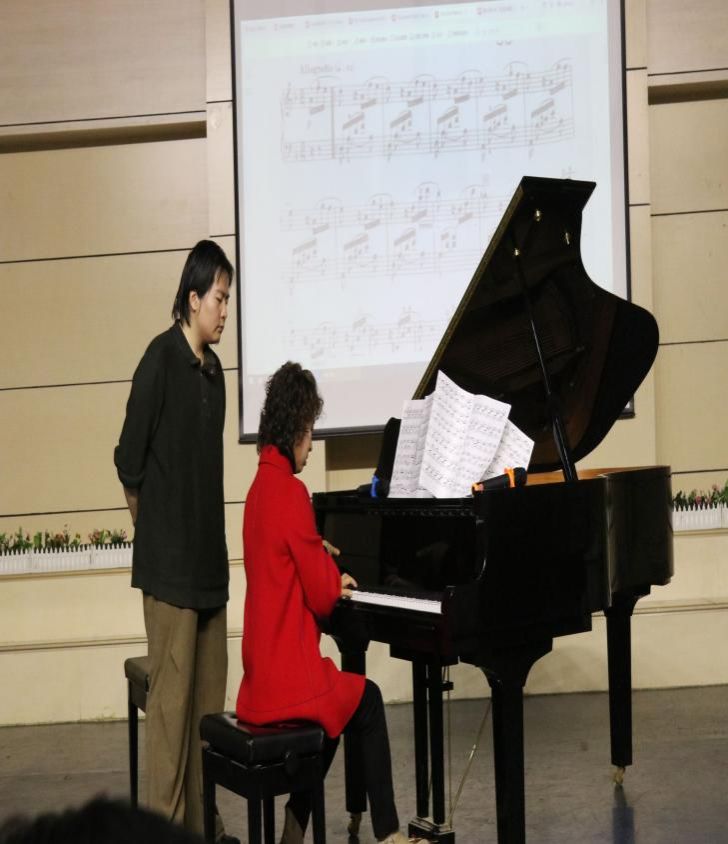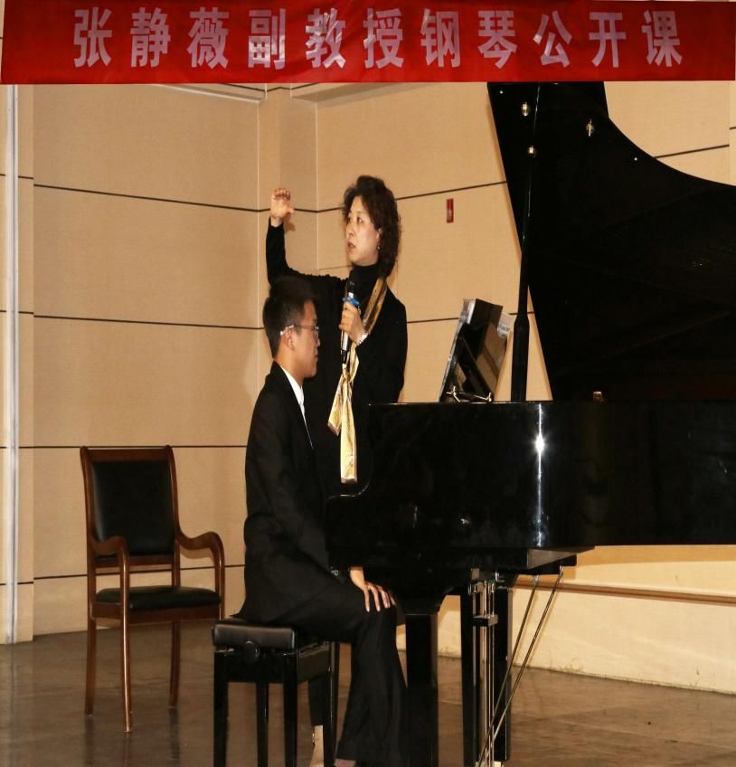 内蒙古师范大学副教授张静薇通过对《暴风雨》《拉赫玛尼诺夫升C小调前奏曲》《告别第》三乐章、《皮黄》等钢琴作品的演奏进行辅导与示范。她强调了钢琴专业基本功训练,演奏的准确读谱,演奏呼吸、乐句的表现等方面知识的重要性,拓宽了学生的演奏视野。