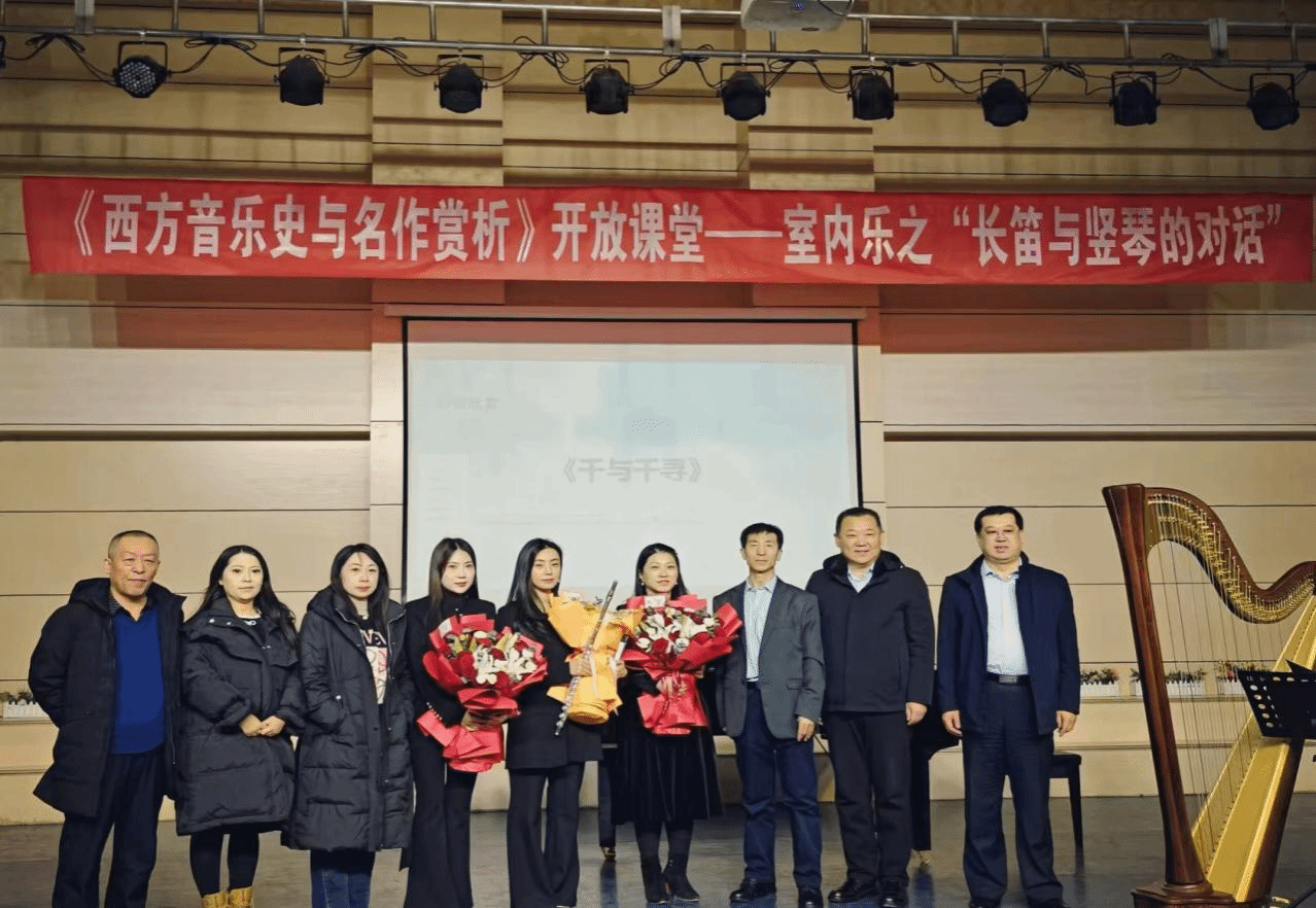 本次活动得到了内蒙古艺术剧院交响乐团的大力支持,乐团长笛演奏家石佳和竖琴演奏家张晓佳,进行了现场示范演奏,在场师生不仅领略了长笛与竖琴之间的和谐美妙,还通过西方音乐经典作品的赏析,深入理解了室内乐的独特魅力。