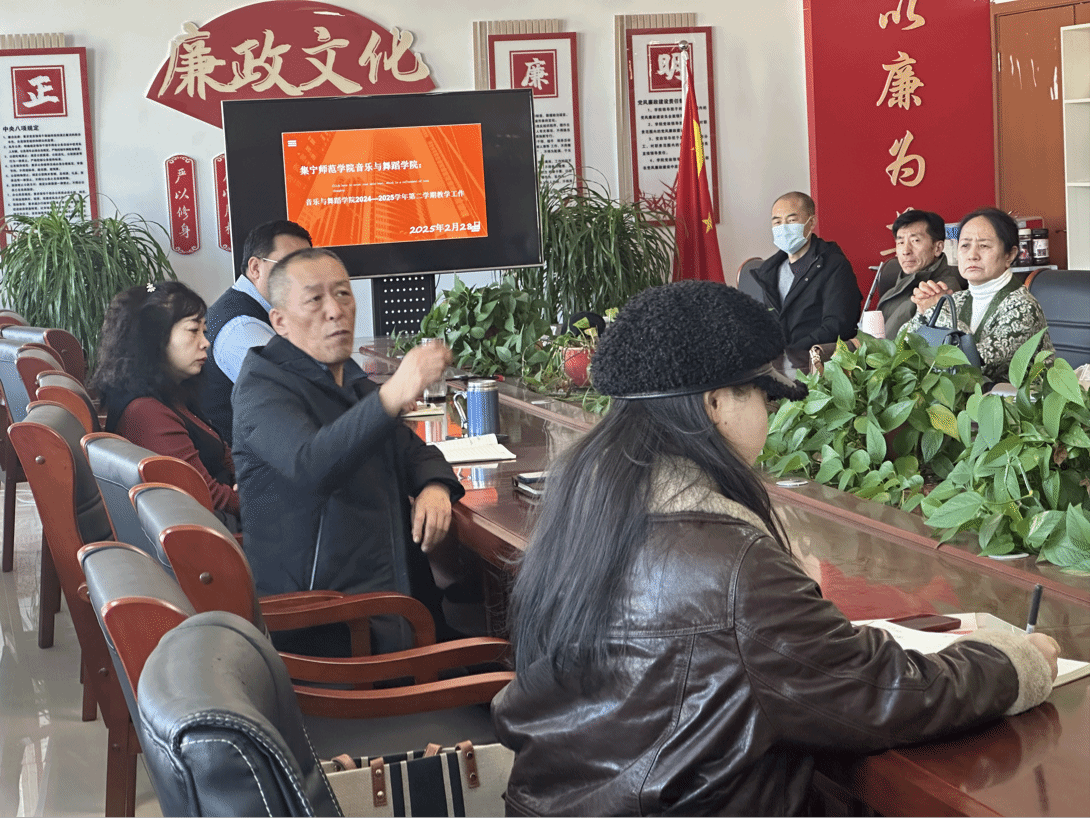 2025年2月28日,集宁师范学校音乐与舞蹈学院召开2024-2025学年第二学期教学工作会议,全面部署新学期重点任务。会议由院长秦雪峰主持,武俊芳书记、郝建平院长及全体教师参会。