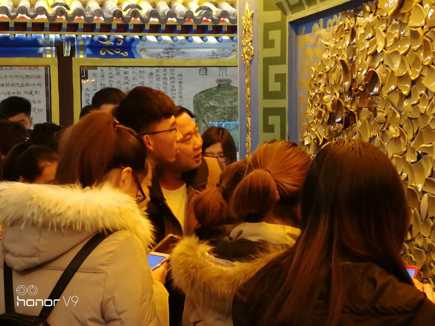 博物馆内主要陈列浙江龙泉瓷、钧瓷、景德镇的枢府瓷和定窑四大窑系瓷器。龙泉瓷分为梅子青、粉青、豆青三种瓷;钧瓷分为月白釉、天蓝釉、天青釉;枢府瓷分为影青瓷和卵白瓷两种,花纹大都是通过模印、画划或刻划的方法绘制而成;定窑以白瓷为主,是瓷中精品。这些瓷器大都由高岭土烧制而成,手艺精湛,是当代技术不可复制的珍贵瓷器。李老师在讲解时特别强调瓷器的“蚯蚓走泥纹”是鉴定瓷器类别与真伪的重要依据之一,并对如何辨别瓷器的来源及修复作了介绍。