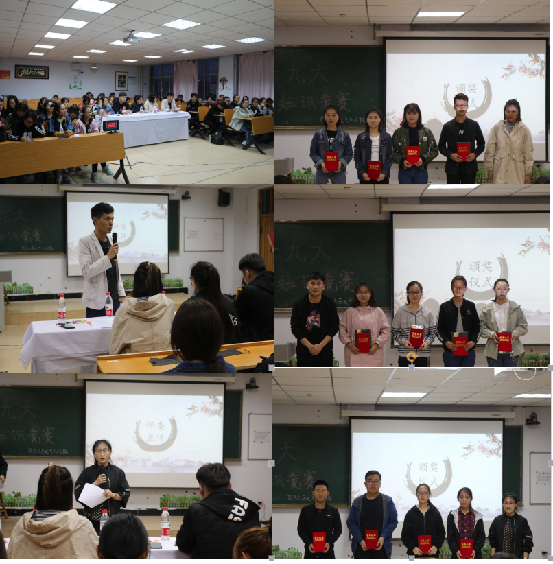 2018年4月2日晚政史学院十九大知识竞赛决赛于主教楼420举办,学工办主任田博、全区十九大知识竞赛一等奖选手我院15思政班学生蔡敏、学生会主席王冰莹、学习部长杨贵枝、学工部长范婉莹担任本次比赛评委及嘉宾。
