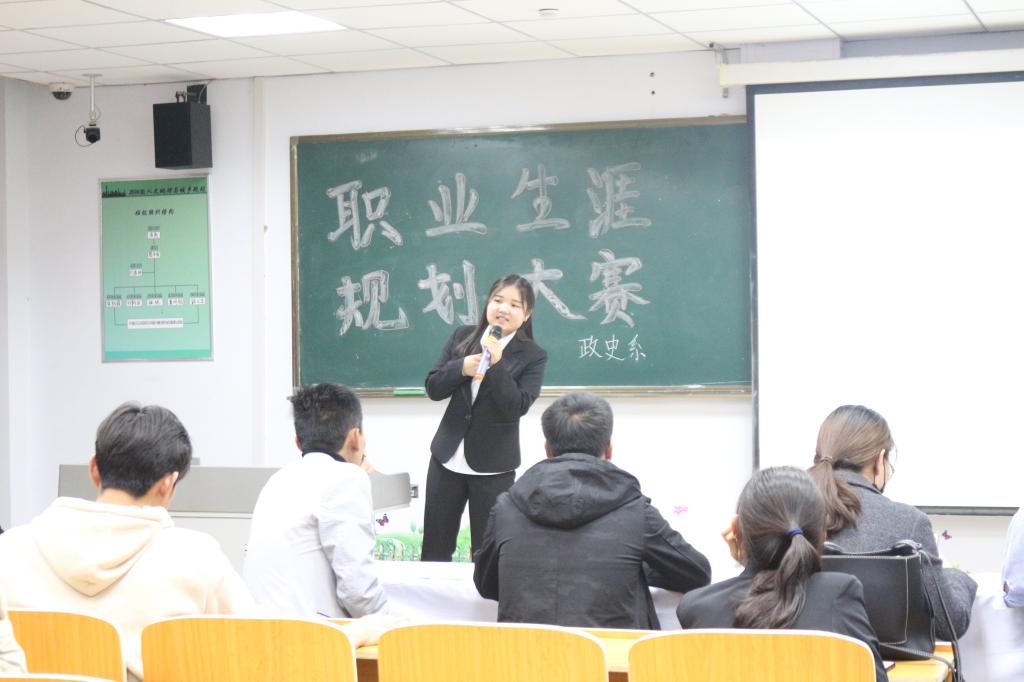 2017年11月1日由政史系就业规划部主办的大学生职业生涯规划大赛在主教楼420举办。出席本次活动的评委有学工办主任田博老师,17级思想政治专业班主任成格乐图老师以及政史系及团总支学生会部分干部。