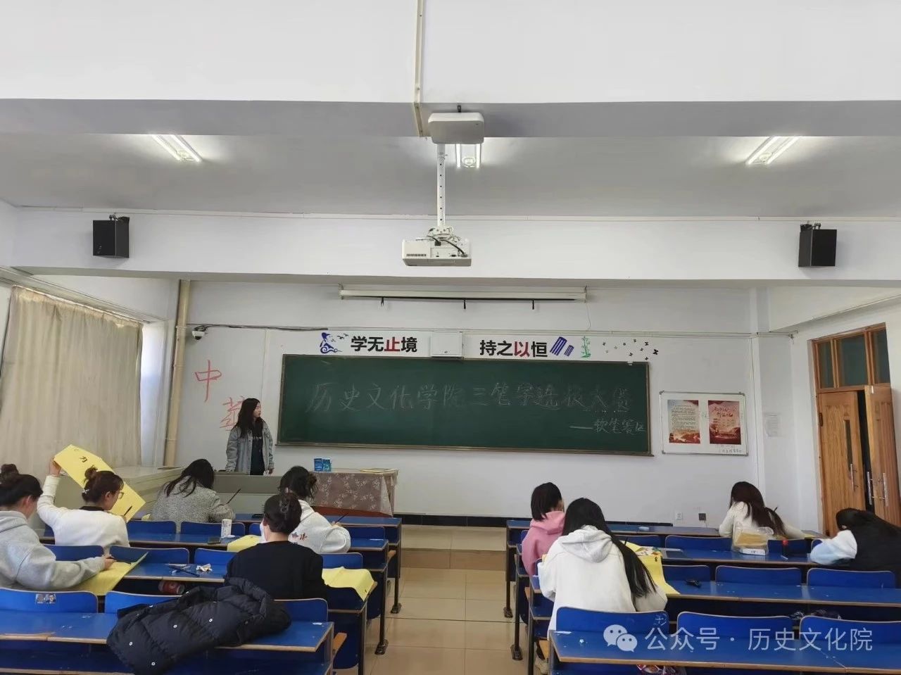 2024年10月10日历史文化学院成功举办第十二届“墨缘杯”三笔字大赛院内选拔赛,此次大赛旨在培养学生兴趣,发展学生技能,彰显中华笔墨文化之魅力,历史文化学院院长张军、党总支副书记宝音、教学科科长梁翠芳、刘艺敏老师担任评委。