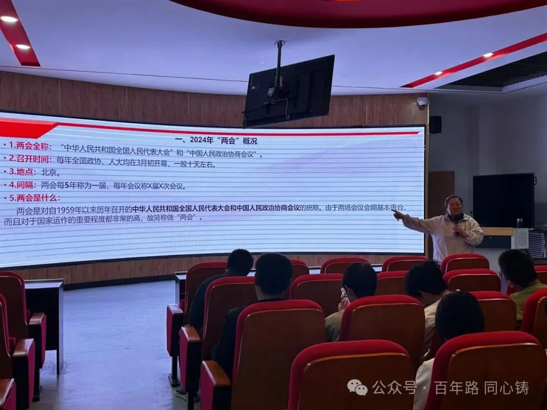 温馨老师以“发展新质生产力,推进高质量发展”为题,以两会的基本常识和内容切入,深入浅出的为我院学生讲解了“十大关键词”、“五大亮点”、“以新质生产力推动经济高质量发展”等等内容。温馨老师以严谨认真、简明易懂的风格,讲解了内容生动、过程流程、事料翔实的一次宣传讲座,引发了良好的反响。温馨老师在讲座的最后提出“今年是新中国成立75周年,是实现“十四五”规划目标任务的关键一年。时间不等人,发展不等人。抓住一切有利时机,利用一切有利条件,看准了就抓紧干,能多干就多干一些,把各方面的干劲带起来,抢抓机遇,加大创新,加快形成和发展新质生产力,推动建设经济社会高质量发展。在机遇面前主动出击,不犹豫、不观望;在困难面前迎难而上,不推诿、不逃避;在风险面前积极应对,不畏缩、不躲闪。以实战业绩向新中国成立75周献礼。作为新时代青年的我们要加油!”。