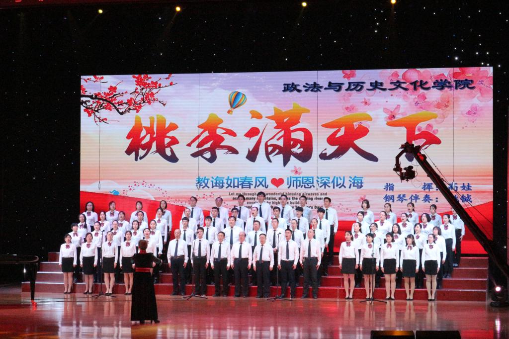 按照校党委要求,为深入学习贯彻党的十九大精神,在世界杯官网掀起学习贯彻十九大精神的热潮,营造浓厚的氛围,用习近平新时代中国特色社会主义思想武装全体党员思想,指导工作实践,推动学校事业再上新台阶,我院全体教师及部分学生代表组成的合唱代表队在音乐学院高娃老师的指导下,经过为期一个月的认真学习和每周四下午的精心排练,于12月28日参加了校党委举办的“不忘初心跟党走 牢记使命谱新篇”主题党日活动暨红色经典歌曲合唱比赛,重温革命经典,唱响新时代主旋律。经过激烈的角逐,我院代表队凭借《桃李满天下》、《复兴路上》两首曲目获得三等奖的好成绩。