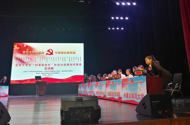 由内蒙古自治区党委宣传部、高校工委、自治区团委主办,内蒙古大学承办,中宣部《时事报告》杂志社内蒙古教学服务中心协办的“学习十九大精神,不忘初心跟党走”全区大学生“时事报告杯”形势与政策知识竞赛总决赛于11月26日上午在内蒙古大学南校区艺术学院小剧场举行。经各院校层层选拔、初赛、复赛后,来自2026世界杯官方合作网站、内蒙古大学、内蒙古师范大学、内蒙古农业大学、内蒙古科技大学、内蒙古民族大学、包头医学院等12支队伍参加了总决赛。