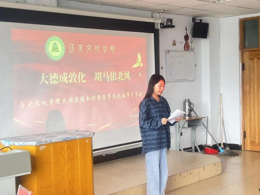 为深入推进我院持久开展民族团结进步教育工作,铸牢中华民族共同体意识,教育青年一代承担使命,2024年5月25日,历史文化学院举办“大德成敦化,胡马依北风”民族团结知识竞赛暨民族文化故事分享会。历史文化学院党总支书记赛汉其其格、副书记宝音参加活动。