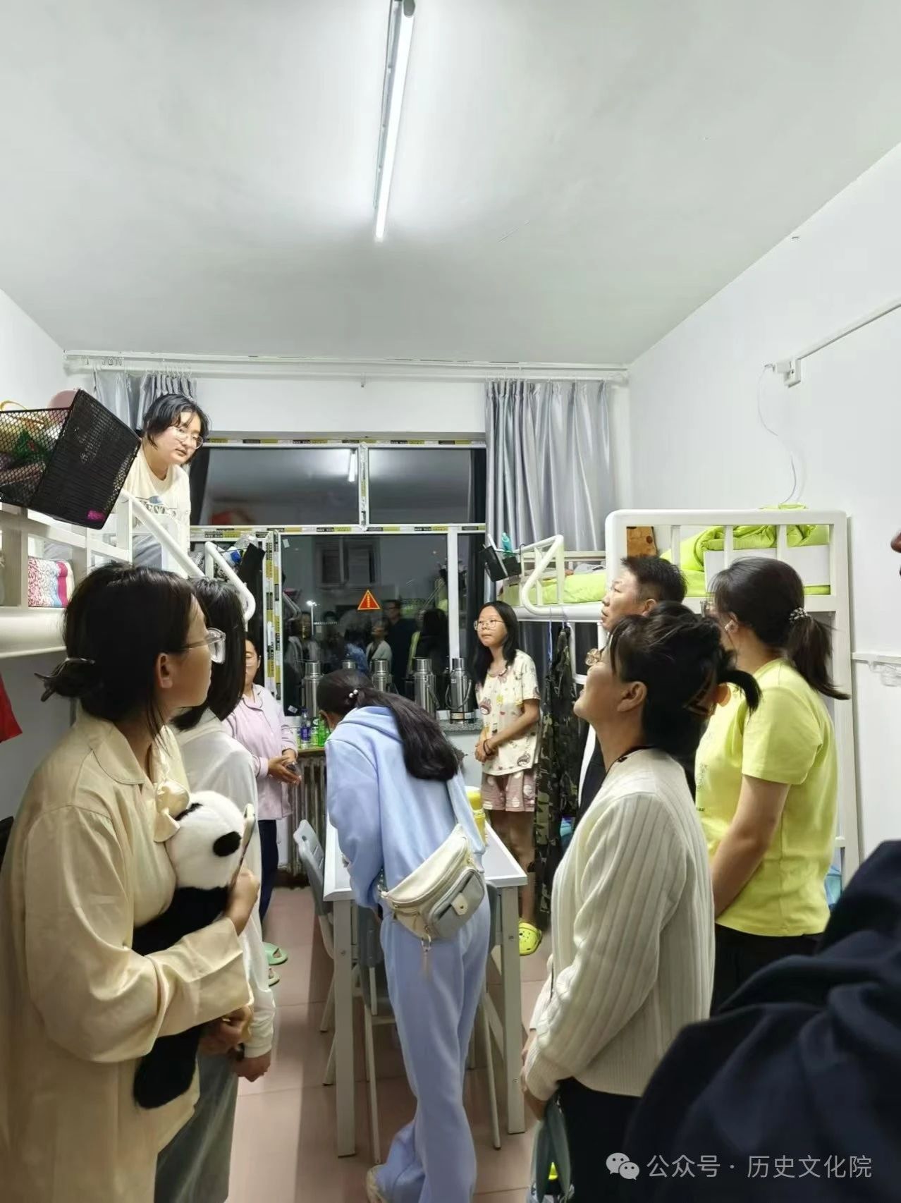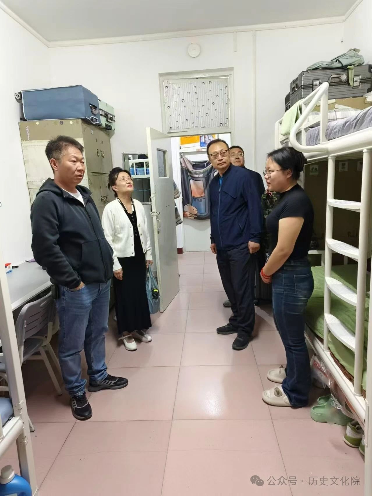 9月1日晚,在新学期拉开帷幕之际,为进一步加强学生宿舍管理,构建干净卫生、安全文明的住宿环境,深入掌握学生返校情况和生活状态,历史文化学院院长张军,历史文化学院党总支副书记宝音,教研室主任大晶,学工办主任范丽敏,班主任叶楠,刘艺敏,王英维老师温暖巡寝。