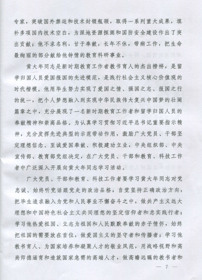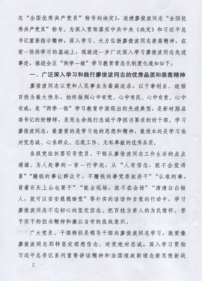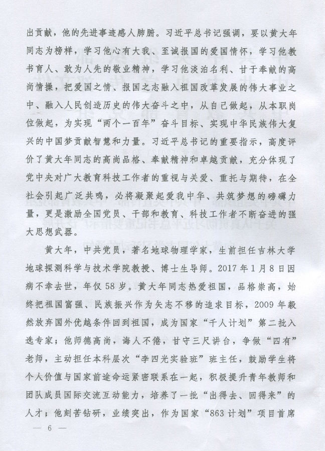 转发关于广泛深入学习黄大年同志和廖俊波同志