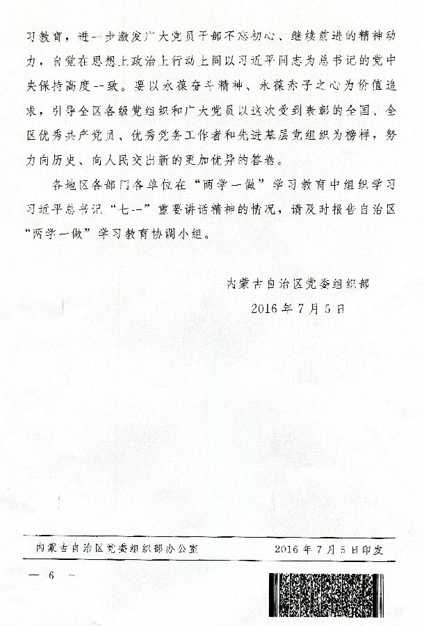 附件:内蒙古自治区党委组织部关于在“两学一做”学习教育