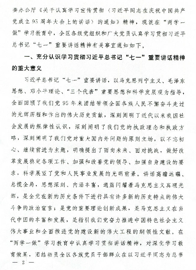 关于在“两学一做”学习教育中认真学习贯彻习总书记在庆祝中国共产党成立95周年大会上的重要讲话精神的通知》的通知
