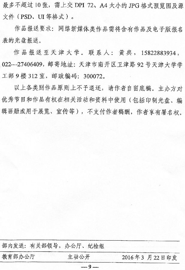 各党总支、直属党支部请于6月30日前将选送作品及报名表报送校纪委办公室,每个大类不超过2项。