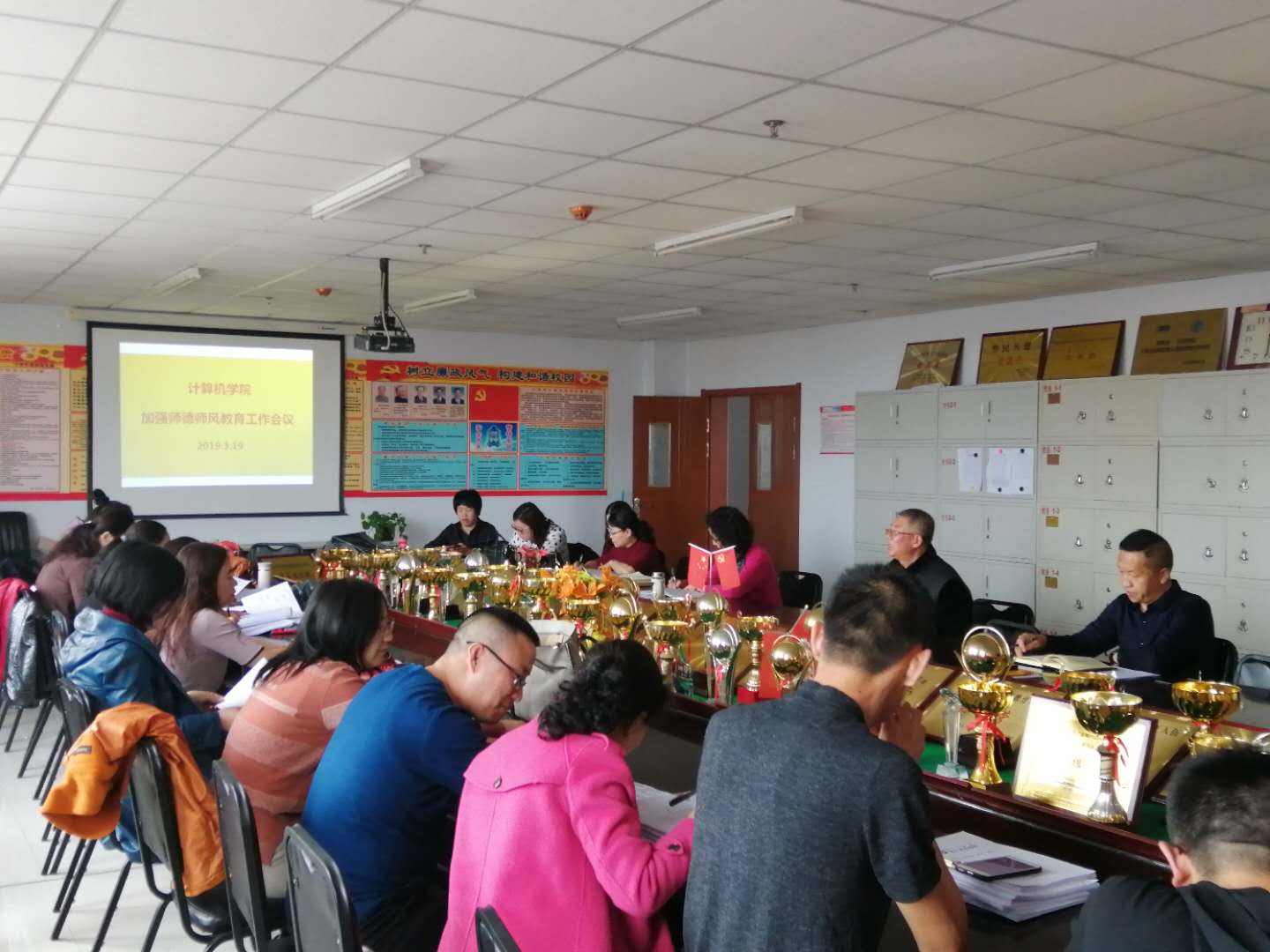 按照校党委刘前贵书记的指示和要求,我院于3月19日下午组织全体教师再次学习了《新时代高校教师职业行为十项准则》。王顺利院长主持会议并向全体教师传达了教育部关于印发《新时代高校教师职业行为十项准则》的通知精神和相关要求,党总支副书记张明东向全体教师详细解读了高校教师的十项准则,同时要求全体教师要认真领会此次会议的精神,做到“十严肃,十不准”,最后还组织学习了教育部关于高校教师师德失范行为处理的指导意见。