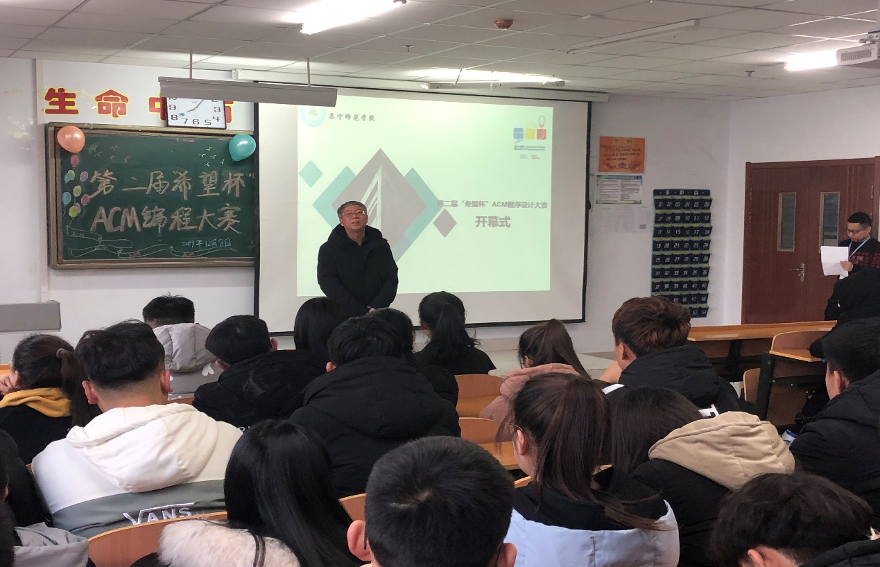 计算机学院王顺利院长出席开幕式,从ACM大赛的历史、世界杯官网参加自治区历届ACM大赛的获奖情况以及大赛之前的准备工作三个方面作了系统的介绍。社团指导教师谢英杰为参赛队员详细介绍了ACM程序设计大赛的概况、比赛的参赛形式、竞赛规则等,大大激发了同学们对编程的兴趣。
