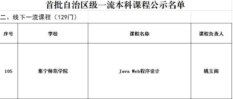计算机与大数据学院姚玉阁老师课程团队申报的《Java Web程序设计》课程获批首批自治区级线下一流本科课程。