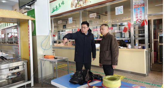 拓俊杰一行先后前往泉山校区、白海校区学生餐厅、教职工餐厅、学生浴池、学生公寓、锅炉房、各教学楼等地进行检查指导,了解用水、用电、餐厅原材料采购、食品留样、菜品供应、安全检查及用气安全等方面工作,详细询问了各教学楼饮用水、暖气、卫生、校园道路除雪等工作落实情况。