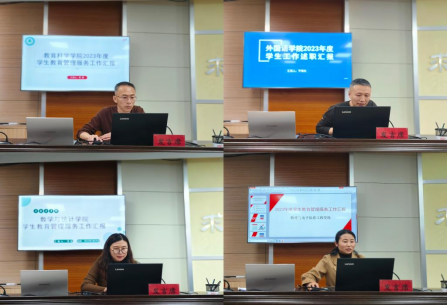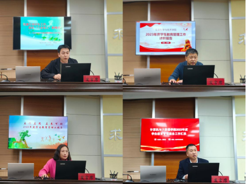 会上,17个二级学院依次就学生教育管理服务工作中队伍建设、学生日常教育管理、学风建设、特色亮点等方面做了述职汇报,分析本学院学生教育管理服务工作中存在的短板与不足,结合专业特点,精心谋划2024年学生工作。