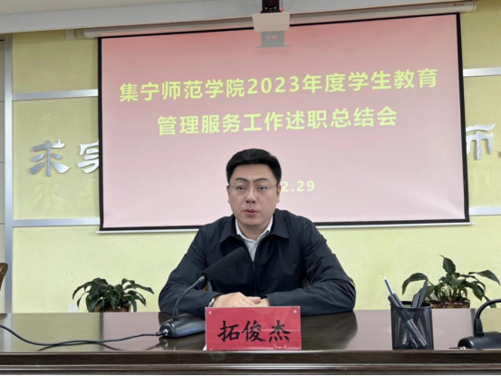 会议最后,拓俊杰就做好2024年度学生教育管理服务工作提出三点要求,第一是要用心,拓展功能、统筹兼顾,落实工作职责。严格落实各项制度要求,规范化、高质量地开展工作;第二是要用情,与时俱进、创新思维,坚守工作使命。在学生服务中体现新成效,拓宽育人新渠道,奋楫学生工作新航向;第三是要用力,提升素质、锤炼品格,秉持工作作风,新征程展现新作为,践行育人初心,发扬集师精神,砥砺前行。