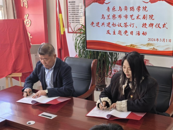 为了构建共同提高党建工作新格局,促进联学共建,3月1日下午,世界杯官网音乐与舞蹈学院与乌兰察布市艺术剧院在白海校区音乐与舞蹈学院32408会议室进行了党建共建签约与授牌仪式,并联合开展主题党日活动。