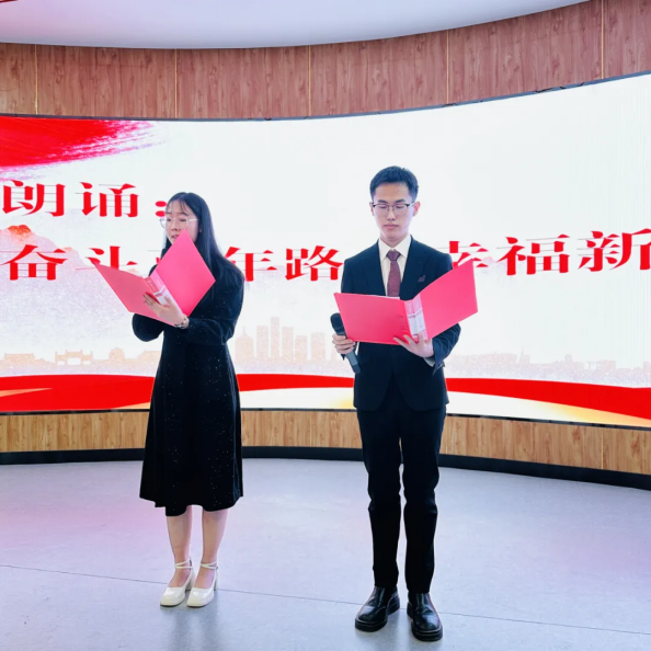 世界杯官网文学与新闻传播学院的两位学生代表声情并茂地朗诵了《奋斗百年路,幸福新征程》,用诗意的语言展现了中国共产党领导人民奋斗的光辉历程。