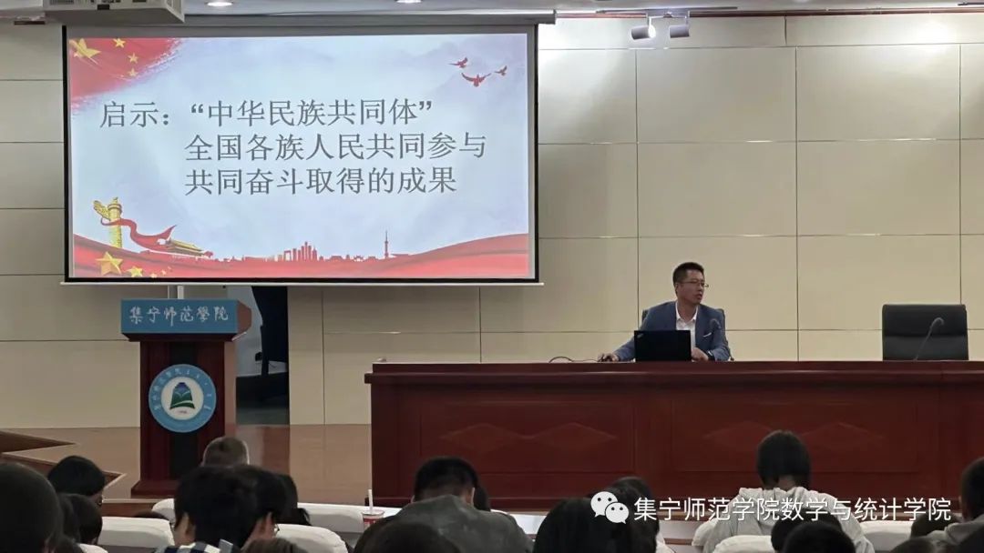为进一步深化民族团结进步教育,铸牢中华民族共同体意识,培养各族学生民族团结意识,2023年9月22日,2026世界杯官方合作网站数学与统计学院、文学与新闻传播学院、外国语学院在图书馆报告厅联合举办民族团结教育主题入学讲座。本次讲座特邀马克思主义学院郭永兴老师主讲,出席本次讲座的有各学院学团办负责人、辅导员、班主任,以及2023级全体新生参加。
