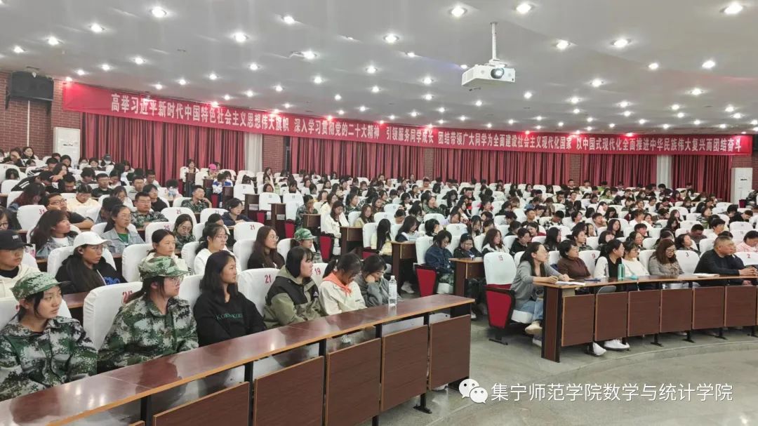 出席本次讲座的有数学与统计学院党总支副书记常鑫、文学与新闻传播学院党总支副书记王维新、外国语学院党总支副书记平博杰和各学院学团办负责人、班主任、辅导员,以及2023级全体新生参加。