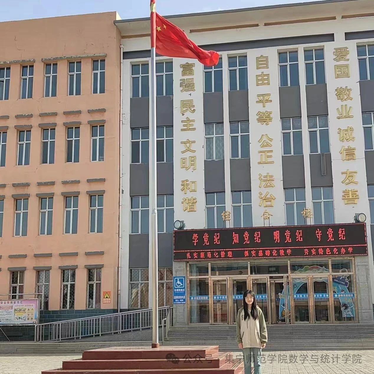 生在红旗下,长在春风里,目光所致皆为华夏,五星闪耀皆为信仰,我院学子与国旗合影,表达对祖国的热爱与祝福。