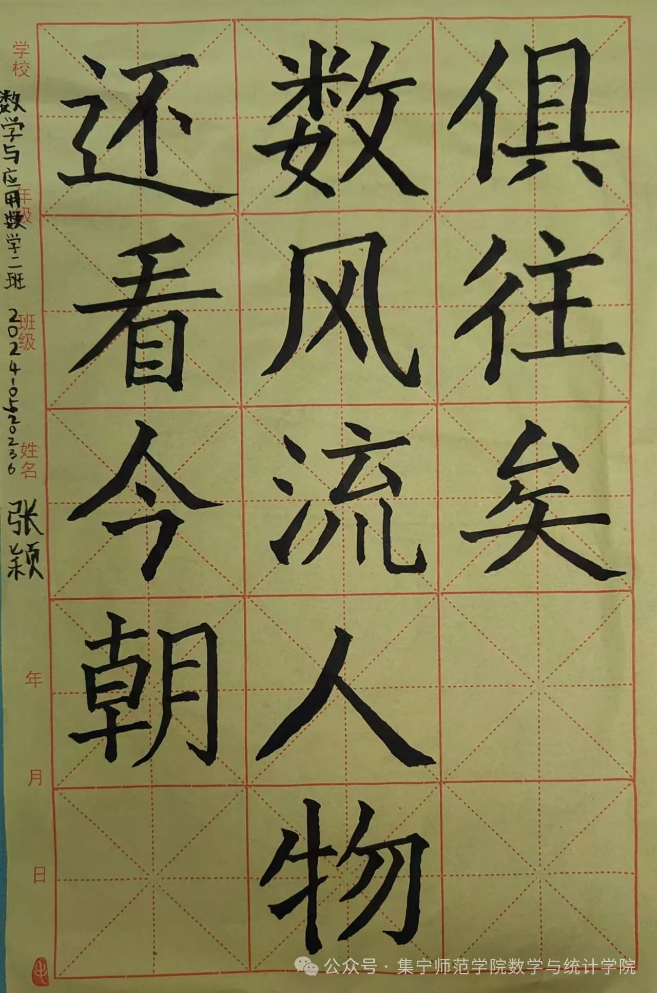 软笔书法部分宋昱、明蓓、孙玮、张龄文、张颖荣获一等奖,推荐2023级数学与应用数学二班宋昱进入校赛。
