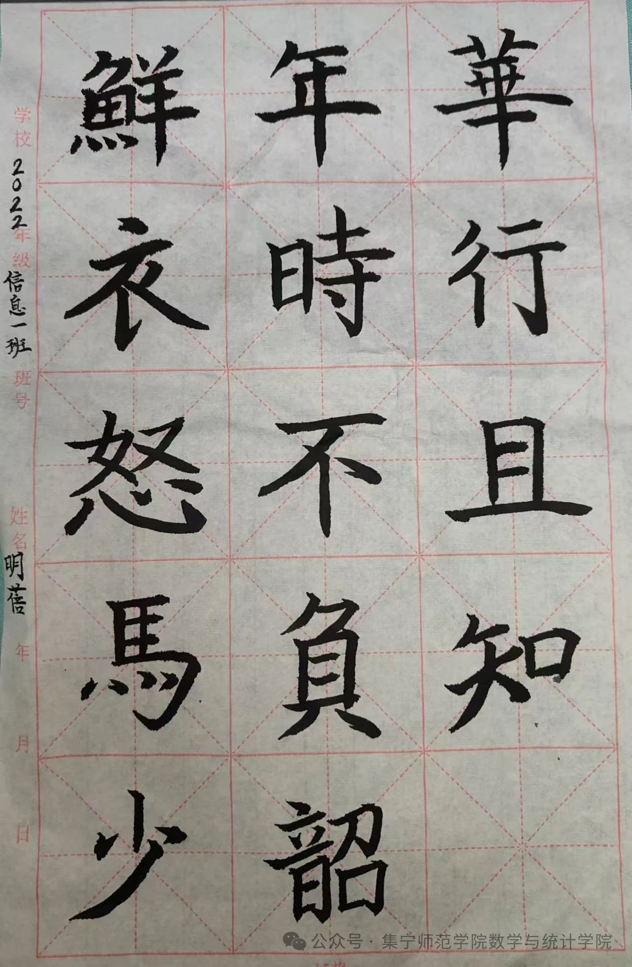 三笔字,即钢笔字、粉笔字、毛笔字,它不仅是师范生一种专业的技能,更是一种艺术体现,为了提高师范生的书写水平,弘扬中华优秀传统文化。我院于10月13日开展“墨缘杯”三笔字大赛。同学们对比赛充满热情,积极参加。硬笔书法部分孙玮、高爽、胡杰宇、李宇涵、高宏涛荣获一等奖,推荐2022级数学与应用数学一班孙玮进入校赛。