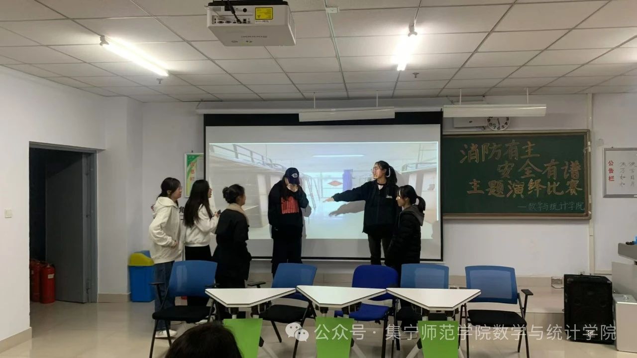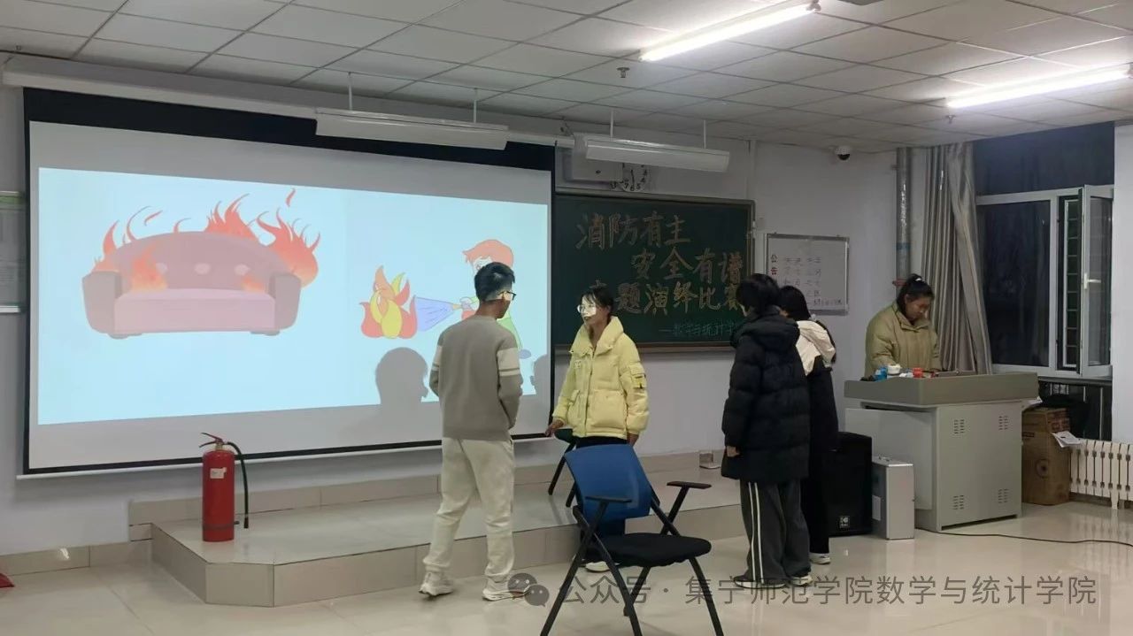 为了提高我院学生消防安全意识,掌握消防知识和技能,数学与统计学院于11月7日在逸夫楼2Y301举办“消防有主 安全有谱”主题演绎比赛。