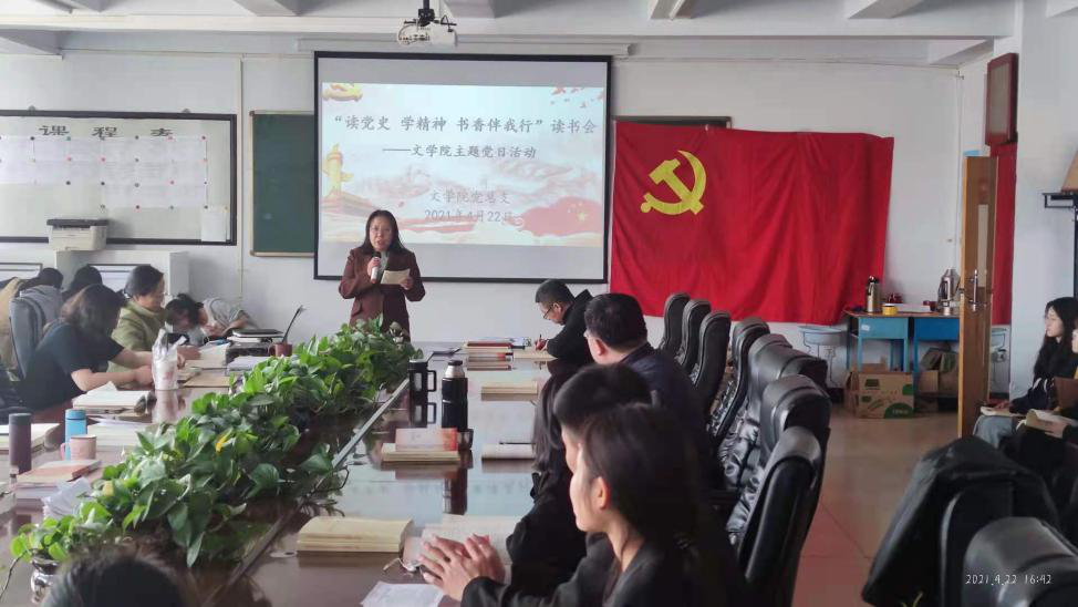 为深入推进党史学习教育,4月22日,文学与新闻传播学院党总支召开“读党史•学精神•书香伴我行”主题党日活动。主题党日活动由教工支部书记李秀林主持,文学与新闻传播学院全体党员参加了本次活动。