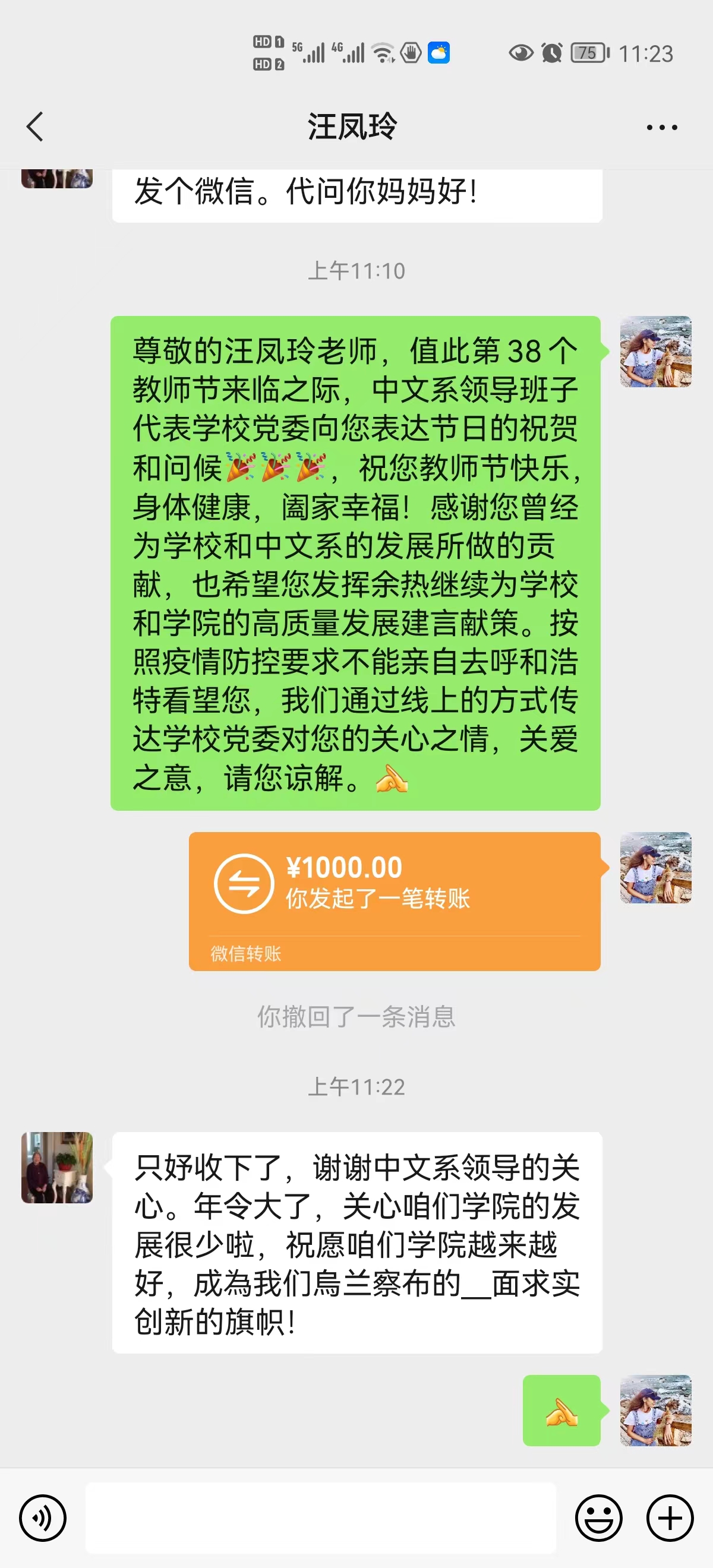 9月6日,文学与新闻传播学院党总支书记张一弘、院长李俊等一行人来到退休老教师家中。在退休老教师家中,张一弘等人亲切地询问了老师们的身体状况,并代表校党委和全学院教职工向他们表达了真挚的问候和节日的祝福。
