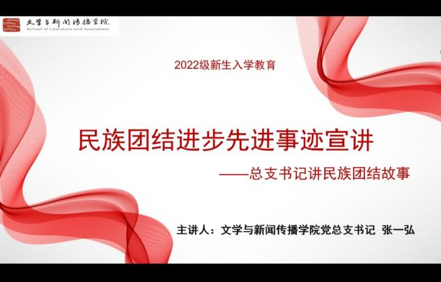 为进一步加强学校民族团结进步教育工作,铸牢各族师生中华民族共同体意识,9月21日,文学与新闻传播学院举办2022级新生入学教育暨“民族团结进步先进事迹宣讲”活动,文学与新闻传播学院党总支书记张一弘担任主讲,学院2022级298名新生参加活动。