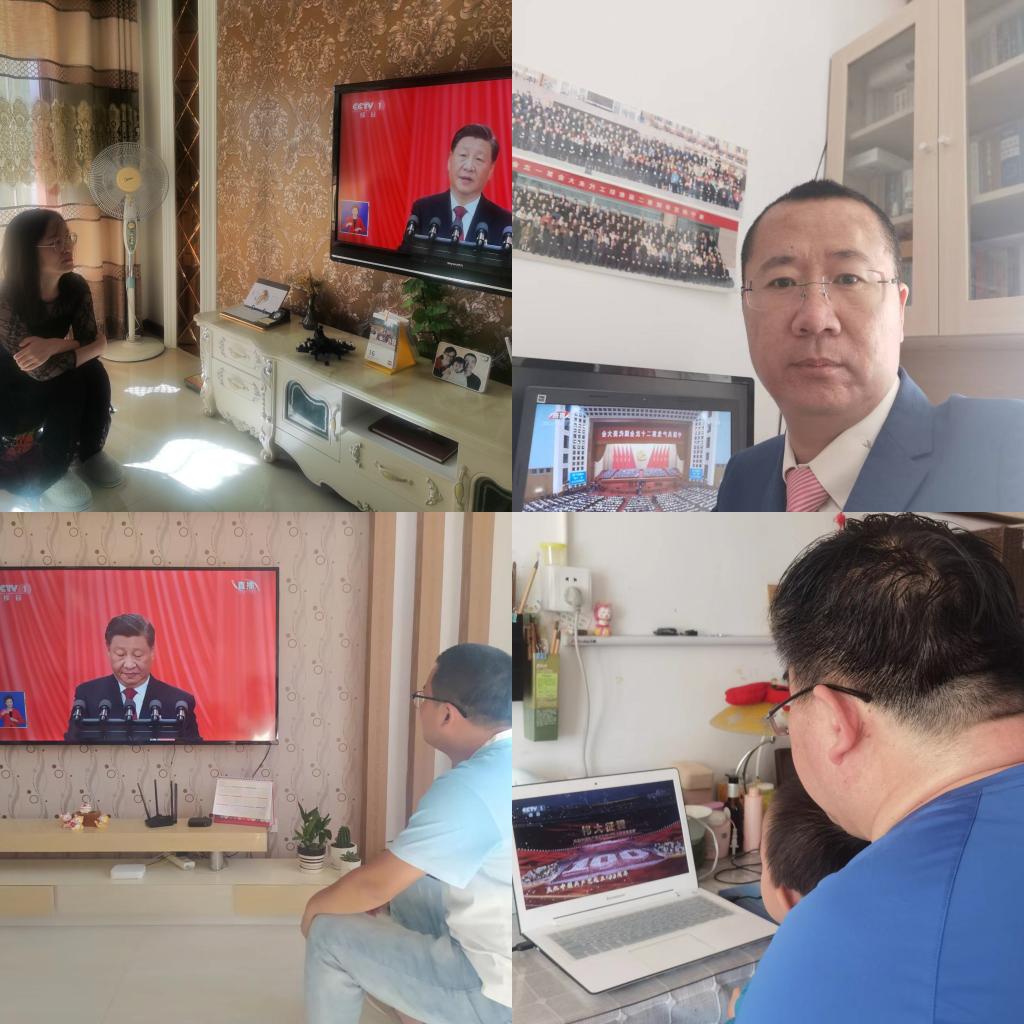 教师居家收看中国共产党第二十次全国代表大会开幕会实况。