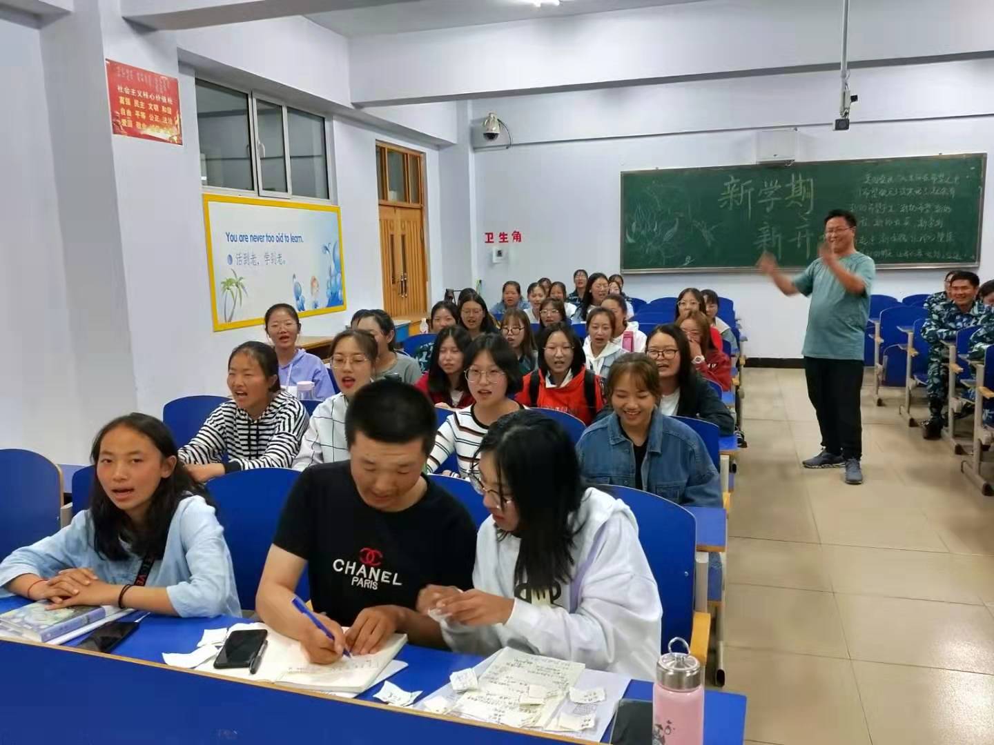 通过班主任老师们的入学教育讲解,同学们开始真正了解自己的大学,并决心努力实现在新的起点上向新的目标奋进。