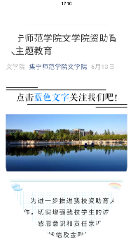 根据今年疫情特殊形势,为扩大宣传覆盖面,6月初,按照学校助学管理中心的布置安排,各个二级学院利用微信、QQ、微信公众号和网站等载体开展线上宣传,积极宣传国家资助政策,开展诚信教育,预防诈骗教育,远离不良贷、套路贷警示教育等,引导学生珍爱信用、理性借贷、理性消费,培养学生征信意识、金融意识、风险意识、法律意识。