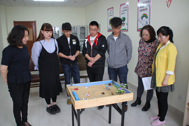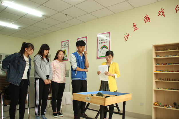 为加强大学生心理健康教育工作,引导广大同学积极关注身心健康,5月11日下午,由学生处组织开展的沙盘游戏体验活动在逸夫楼心理咨询室进行,活动由国家二级心理咨询师孙俊芳老师指导。